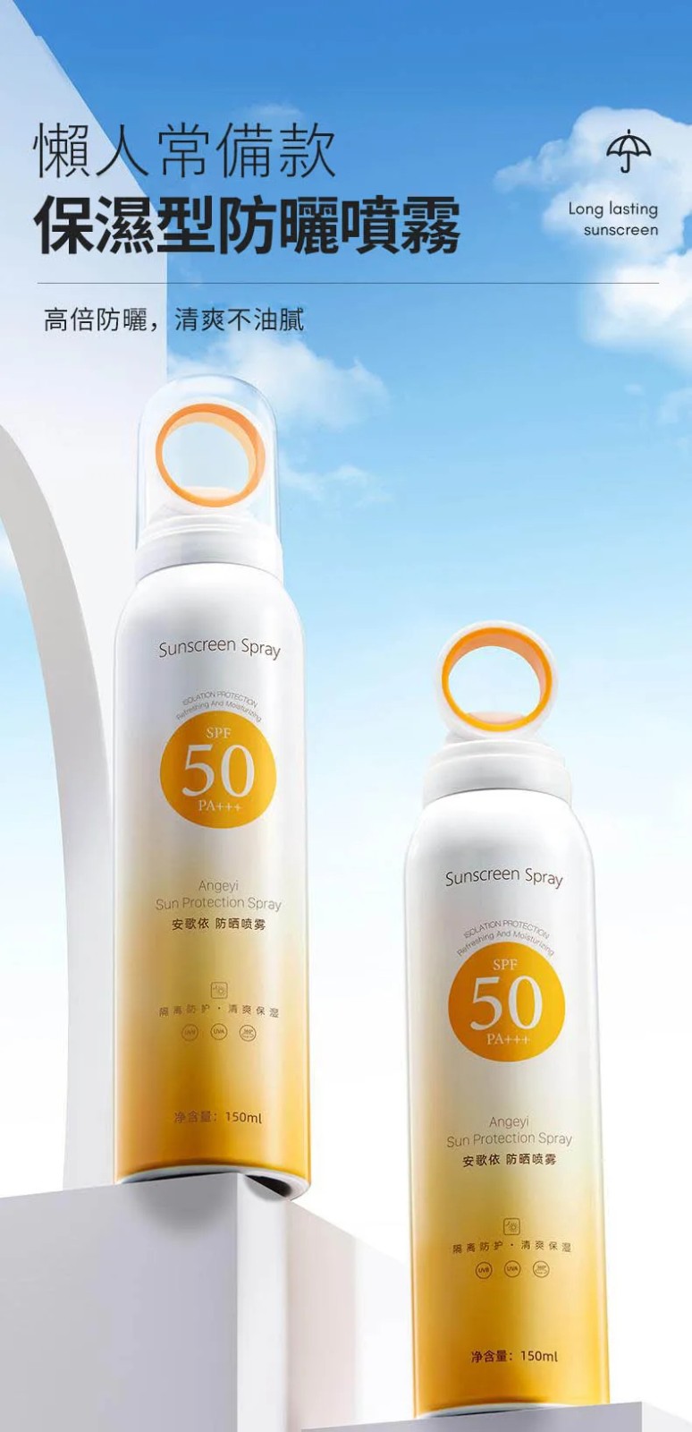 半小時前安歌依光圈防曬噴霧,細密噴頭設計 噴頭360°可旋轉自然膚惑,隔離防曬一瓶搞定 - 限時搶購「安歌依光圈防曬噴霧」2入78%用戶的選擇!NT$998【限時免運】